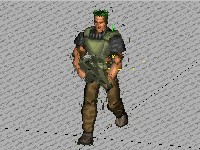 'This is the sprite in the final game, the sprites are sorted by their y-value, so Zeke can walk behind objects like pillars, or infront of them, giving the illusion of depth. The piece of code that makes it work is just a sorting routine, it puts a bunch of numbers in order'