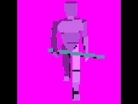 'This is what the final sprite looks like, anything pink doesn't get rendered by the engine, when you tell Zeke to walk down it would play this animation, or string of renders'